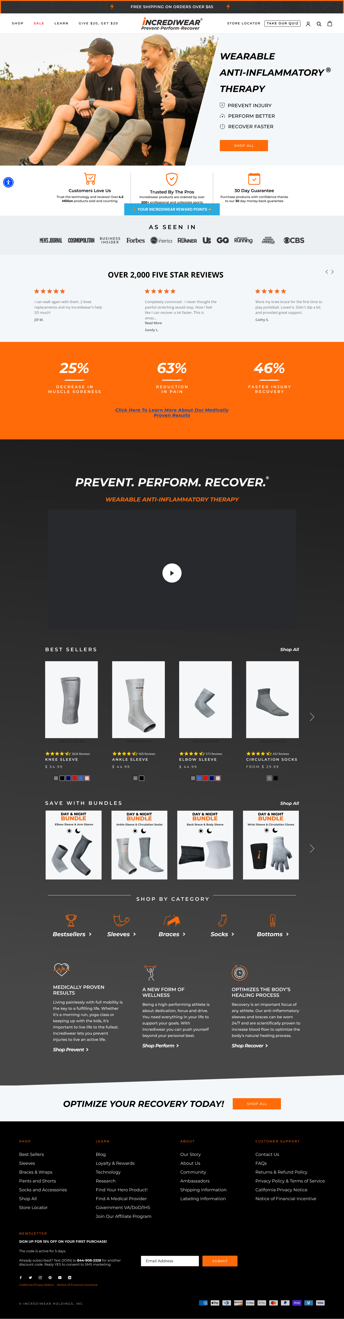 Incrediwear, a leader in anti-inflammatory wearable technology, enhances recovery by increasing circulation and reducing pain. Our marketing strategy focuses on maximizing ROAS, optimizing conversions, and scaling efforts through targeted social campaigns and full-funnel marketing. With custom ads, A/B testing, and optimized web design, we've doubled ROAS month-over-month, boosted conversions, attracted new customers, and significantly increased revenue.